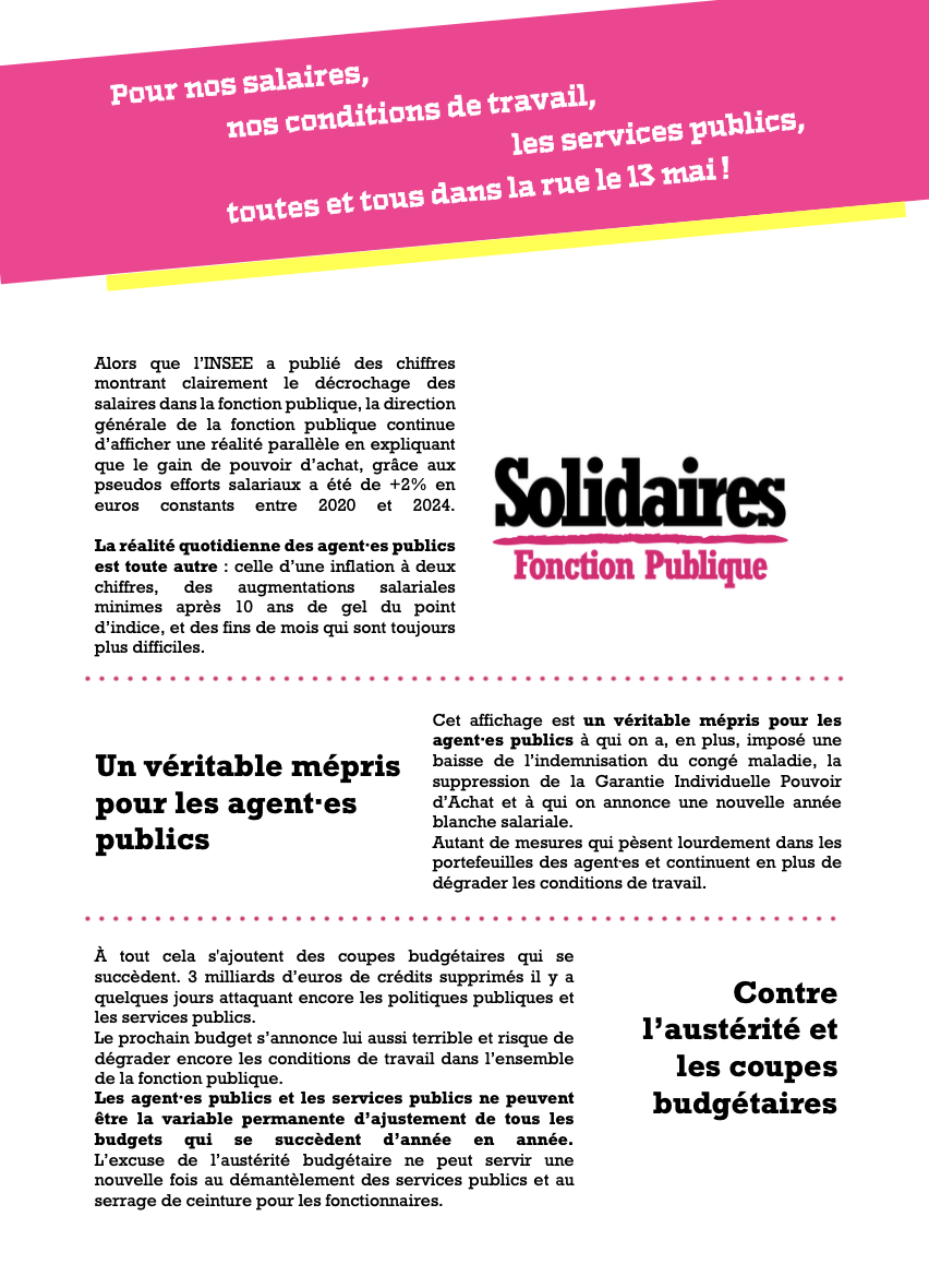Cet affichage est un véritable mépris pour les agent·es publics à qui on a, en plus, imposé une baisse de l’indemnisation du congé maladie, la suppression de la Garantie Individuelle Pouvoir d’Achat et à qui on annonce une nouvelle année blanche salariale. Autant de mesures qui pèsent lourdement dans les portefeuilles des agent·es et continuent en plus de dégrader les conditions de travail.