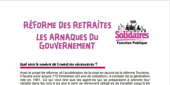 Solidaires revendique une retraite à 60 ans à taux plein avec 37,5 annuités de cotisations et 5 ans de départ anticipé sur l’âge légal pour les catégories actives.