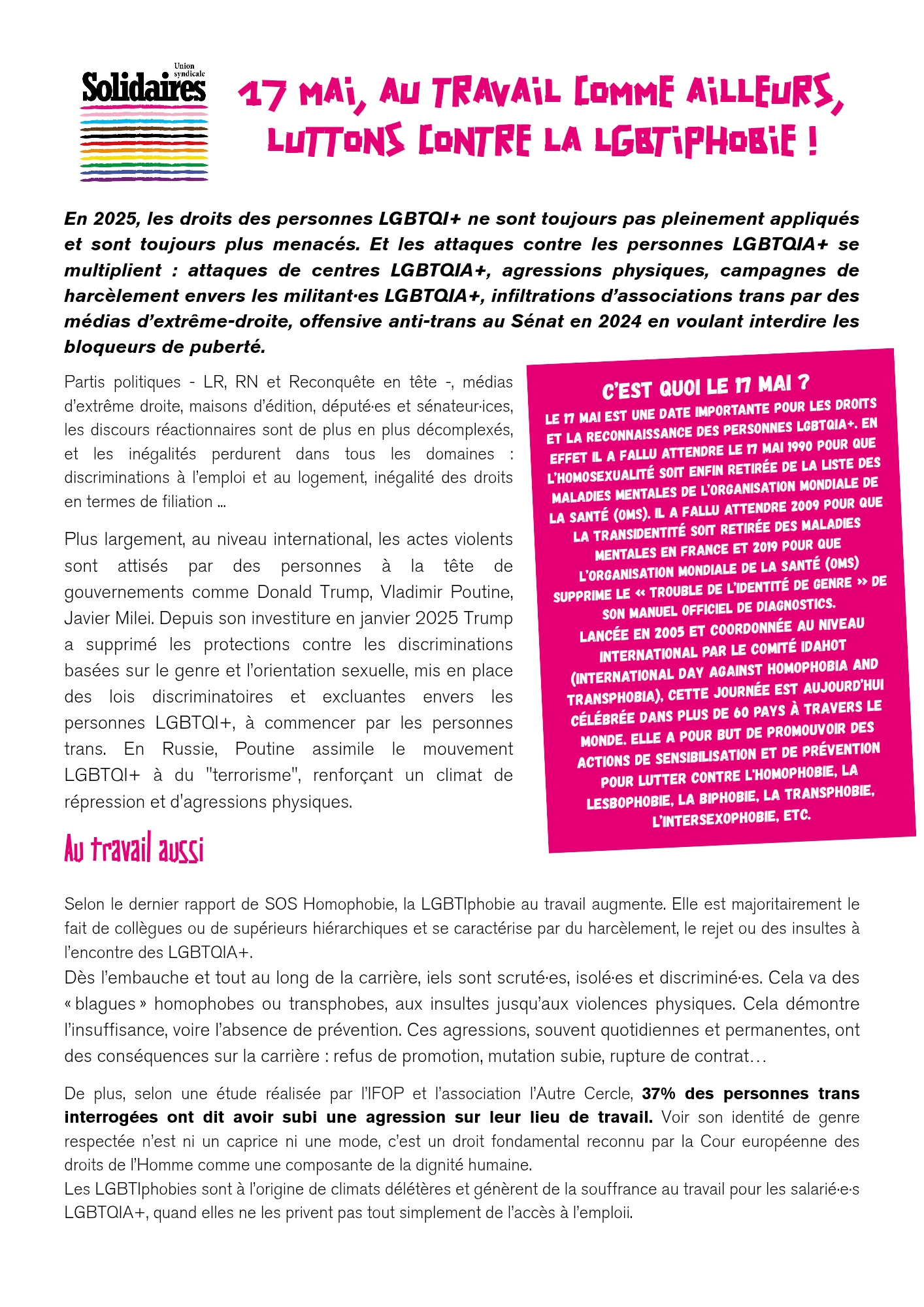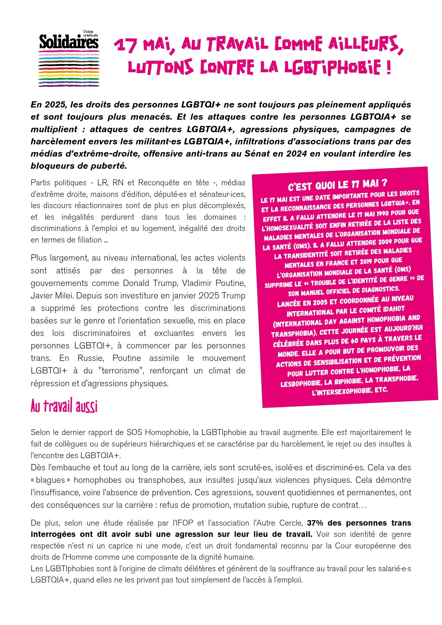 Face à leur haine, au travail comme ailleurs, la solidarité est notre force.