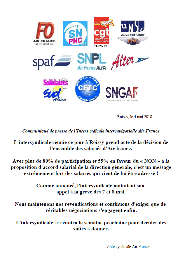 Communiqué de l’Intersyndicale inter-catégorielle Air France
