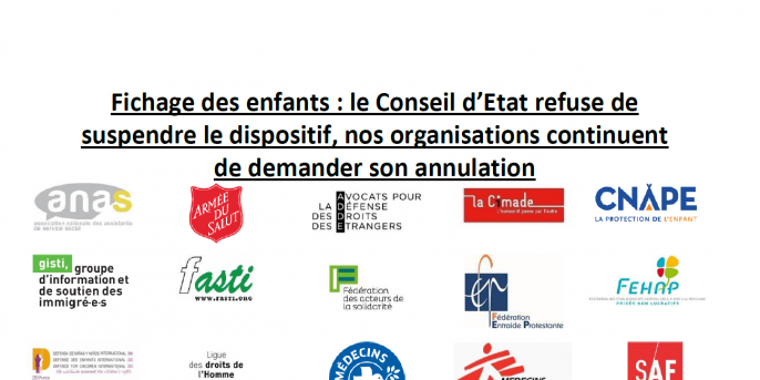 Fichage des enfants : le Conseil d’Etat refuse de suspendre le dispositif, nos organisations continuent de demander son annulation