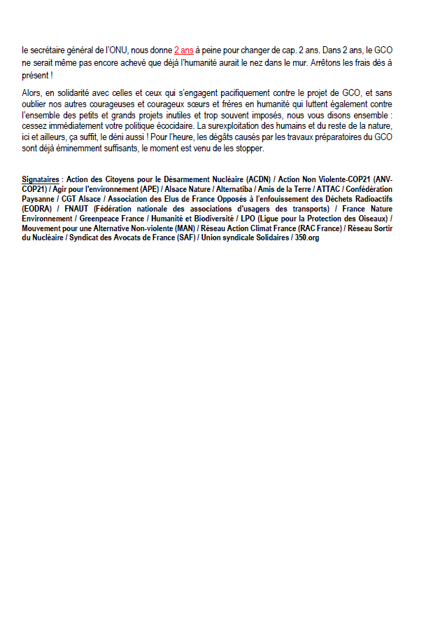 Grand contournement ouest de Strasbourg : La société civile apporte son soutien aux opposant-es