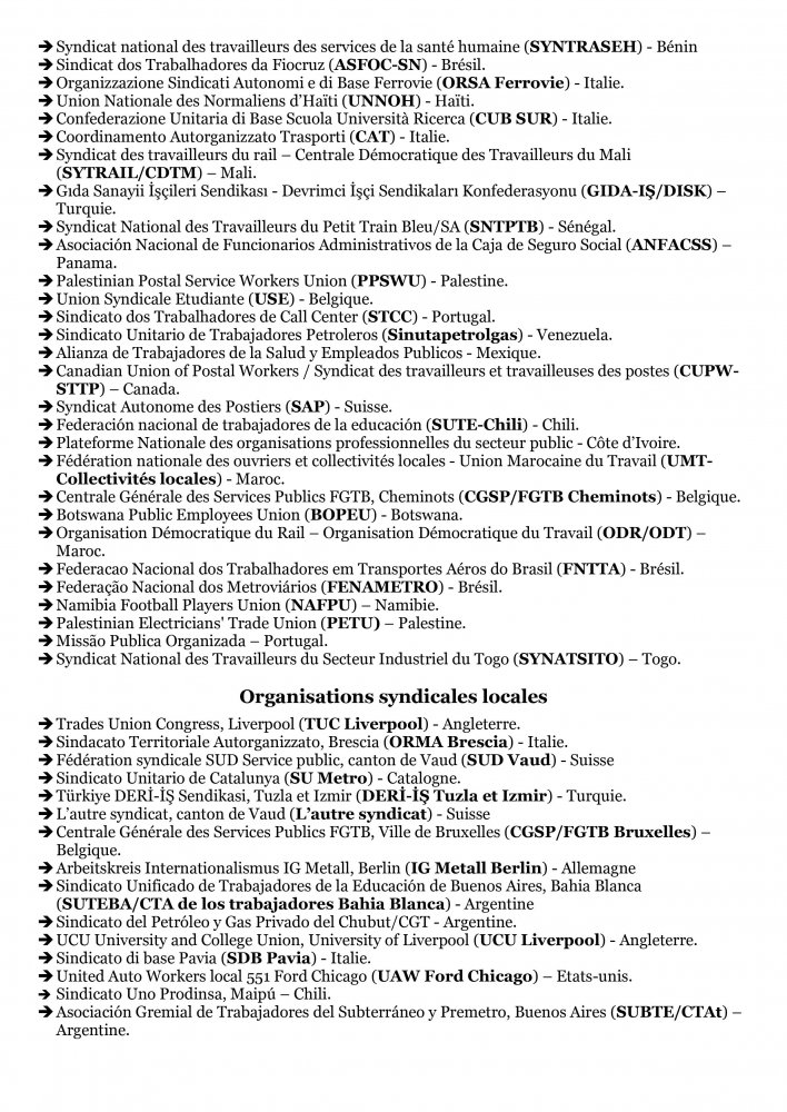 Les organisations membres du Réseau syndical international de solidarité et de lutte