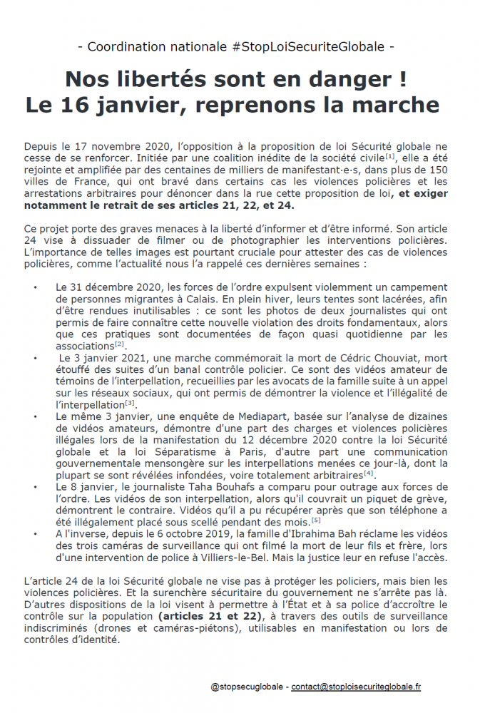 Communiqués du collectif #StopLoiSecuriteGlobale