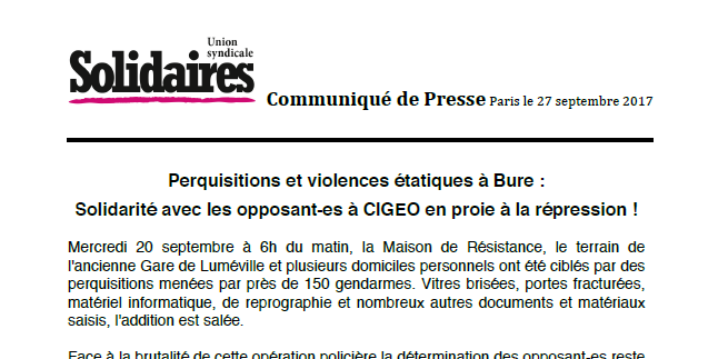 Perquisitions et violences étatiques à Bure : Solidarité avec les opposant-es à CIGEO en proie à la répression !