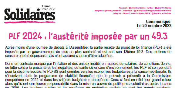 Le projet de loi de finances a ceci de commun avec le PLFSS : c’est bien l’obsession des économies budgétaires qui ont guidé les choix du pouvoir plutôt que l’augmentation du budget pour répondre aux besoins de la population et à l’urgence écologique, par une meilleure répartition des richesses en taxant plus les riches et les multinationales et en luttant contre la fraude fiscale et les paradis fiscaux.