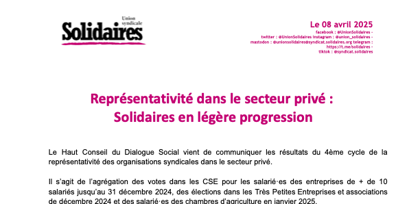 Il s’agit de l’agrégation des votes dans les CSE pour les salarié·es des entreprises de + de 10 salariés jusqu’au 31 décembre 2024, des élections dans les Très Petites Entreprises et associations de décembre 2024 et des salarié·es des chambres d’agriculture en janvier 2025.