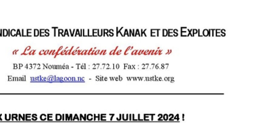 Communiqué USTKE - Tous aux urnes ce dimanche 7 juillet 2024 !