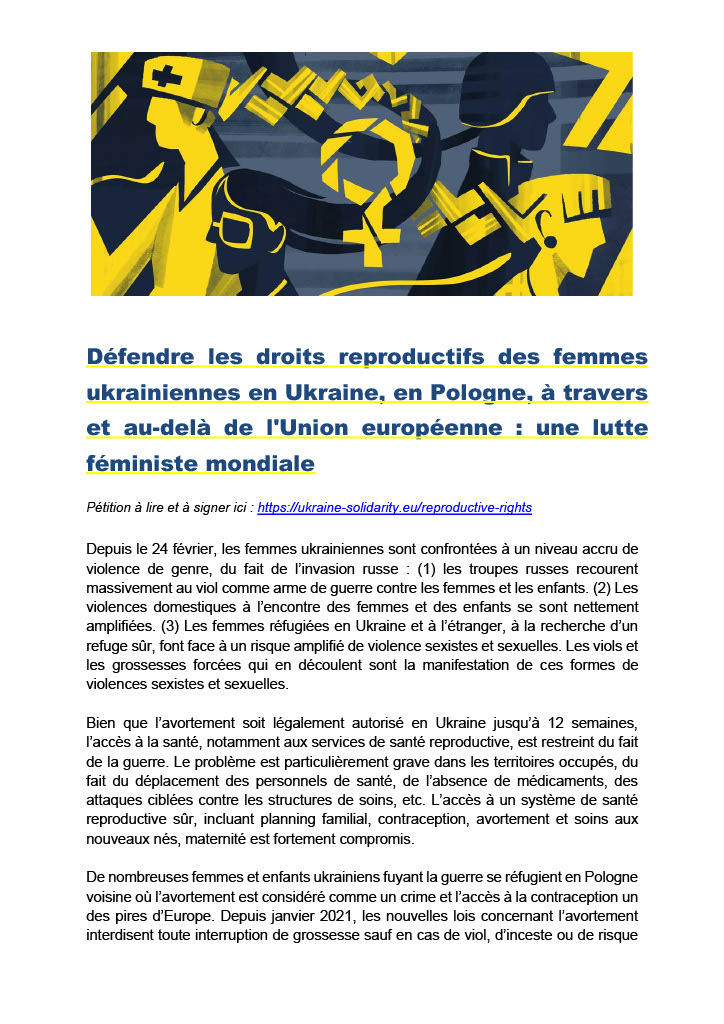Pétition à lire et à signer ici : https://ukraine-solidarity.eu/reproductive-rights