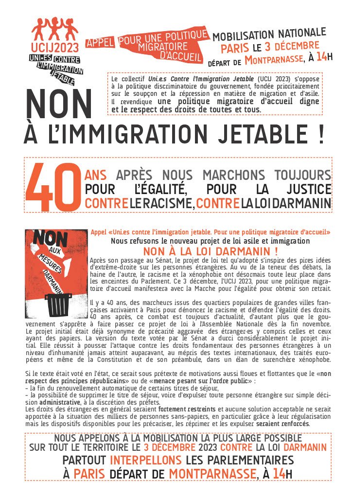 L'UCIJ appelle à se mobiliser partout en France contre le projet de loi Darmanin le dimanche 3 décembre avec la Marche pour l'Égalité (à Paris le rendez vous pour le départ de la manifestation aura lieu à Montparnasse à partir de 14h00).