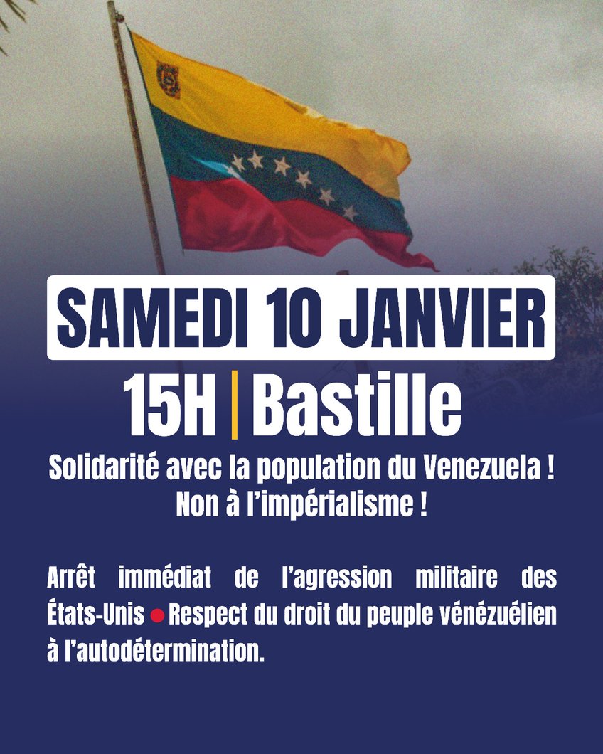 Dans la nuit du vendredi 2 au samedi 3 janvier, les Etats-Unis d’Amérique ont lancé une opération militaire de grande ampleur sur la capitale du Venezuela, Caracas. Le président Vénézuélien Nicolas Maduro, et sa femme Cilia Flores, ont été enlevés et placés en prison à New-York. Selon les premières estimations, 78 personnes seraient mortes au cours de l’opération, parmi lesquelles au moins une civile. Cette agression impérialiste et coloniale ordonnée par Donald Trump viole ouvertement la Charte des nations unies et la constitution des USA.