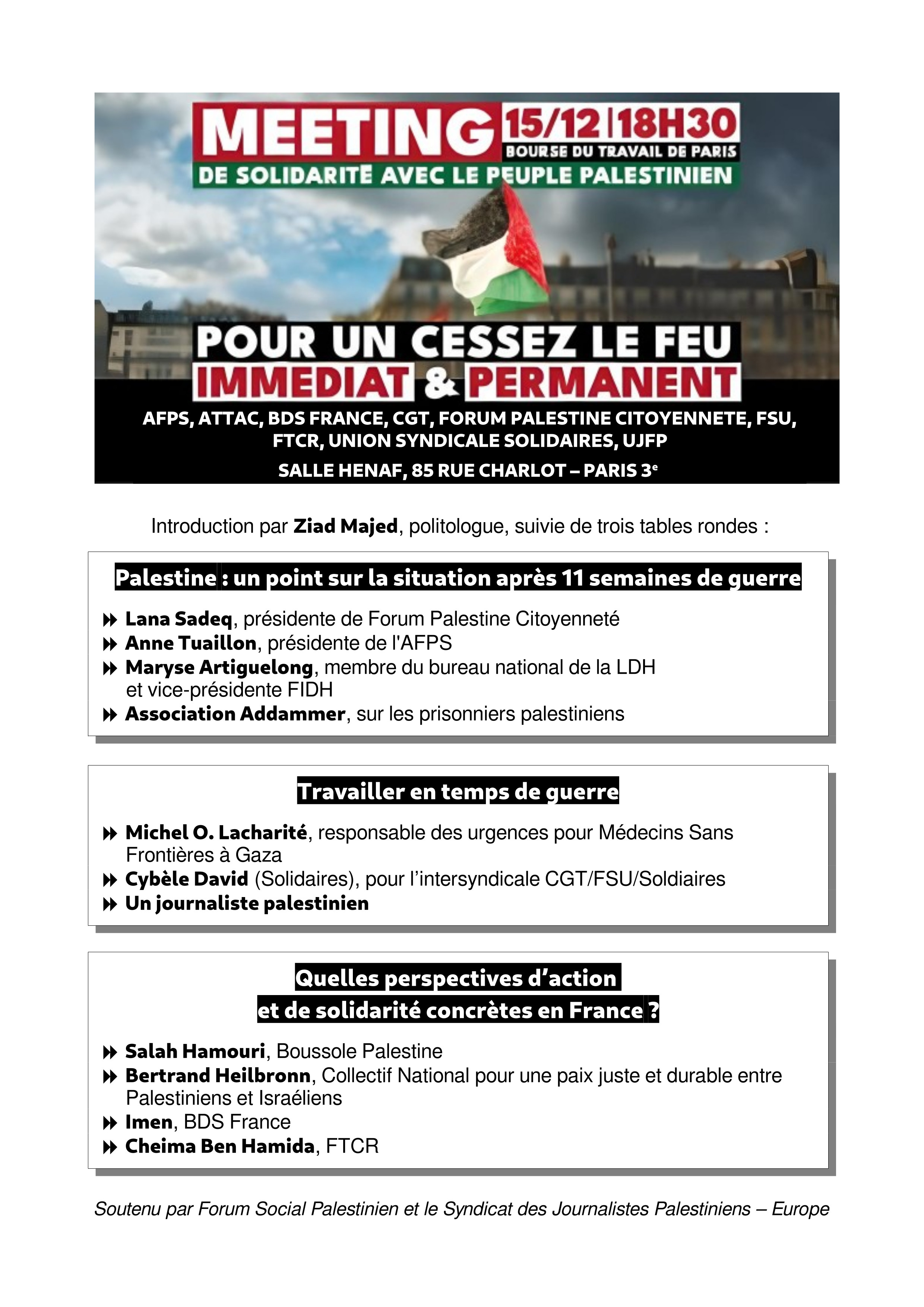 (Paris) Meeting de Solidarité avec le peuple palestinien le 15 décembre
