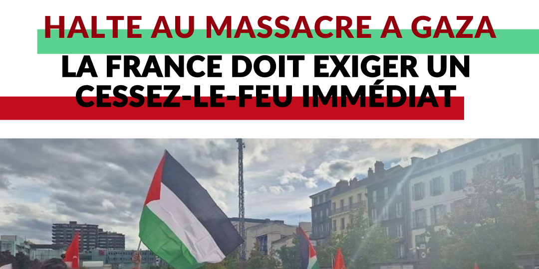 Nous demandons un cessez-le-feu immédiat à Gaza, la fin des bombardements, des offensives terrestres et des déplacements forcés de populations, ainsi que la levée immédiate du blocus. Nous exigeons que la France s'engage activement dans ce sens.