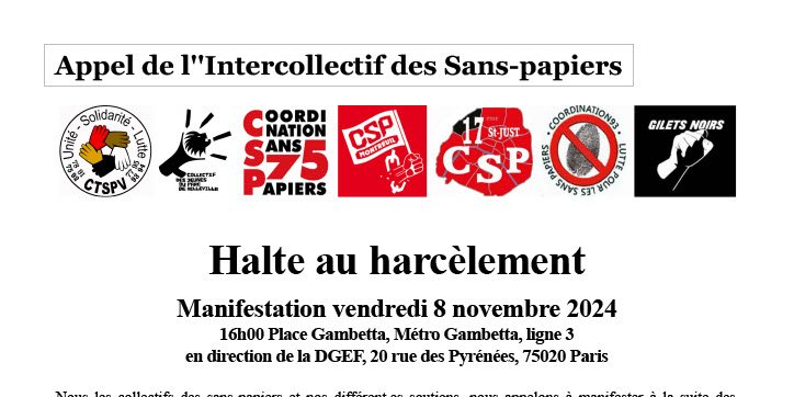 Appel de l'intercollectif des sans papiers d'Île de France : Halte au harcèlement !