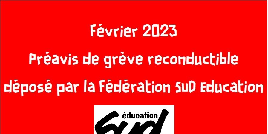 La Fédération des syndicats SUD éducation dépose un préavis de grève couvrant, du 21 janvier au 20 mars 2023 l'ensemble des personnels travaillant dans les établissements scolaires :