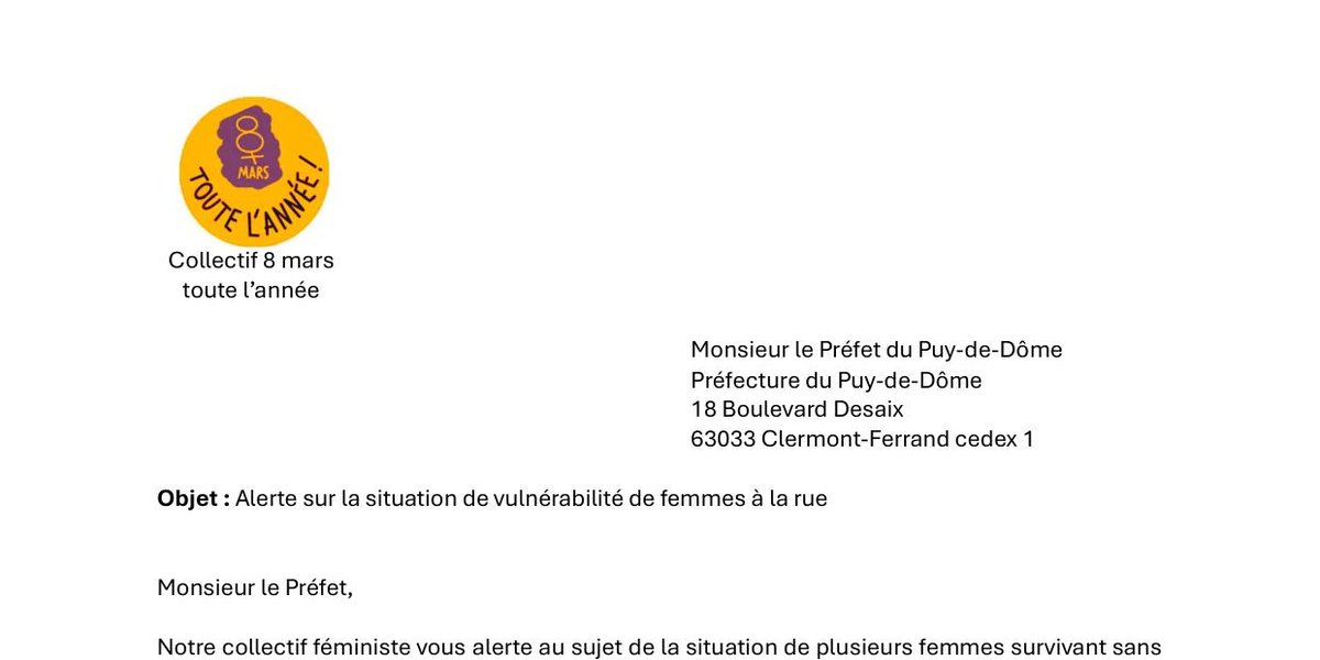 Notre collectif féministe vous alerte au sujet de la situation de plusieurs femmes survivant sans domicile ni hébergement d’urgence dans le Puy-de-Dôme.