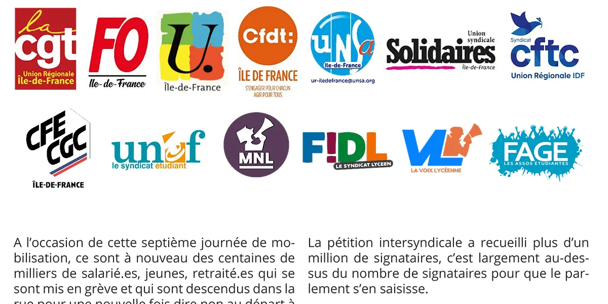 L’intersyndicale soutient et encourage tous les secteurs professionnels à poursuivre et amplifier le mouvement pour obtenir le retrait de ce projet de loi.