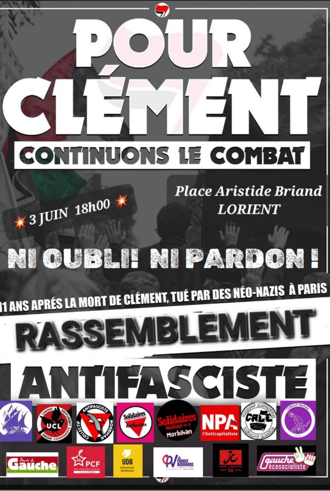 Lorient - Pour Clément - Ni Oubli! Ni Pardon! Rassemblement lundi 3 juin