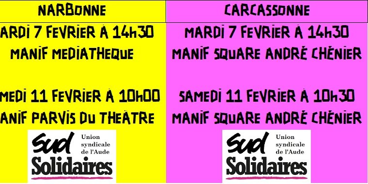 Manifestations à Narbonne et Carcassonne les 7 et 11 février