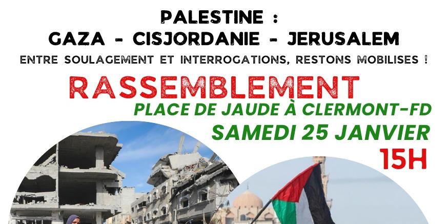 Le Collectif 63 pour une paix juste et durable, mobilisé depuis 15 mois, se félicite de ce premier pas, il n’est pas que le fruit de tractations politiques mais aussi celui de la mobilisation de tous les défenseurs des droits des peuples, des droits humains, du droit international dans le monde entier, qui ont manifesté sans relâche pour que s’arrête le génocide, reconnu par les instances internationales et de nombreuses ONG, dont Amnesty International.