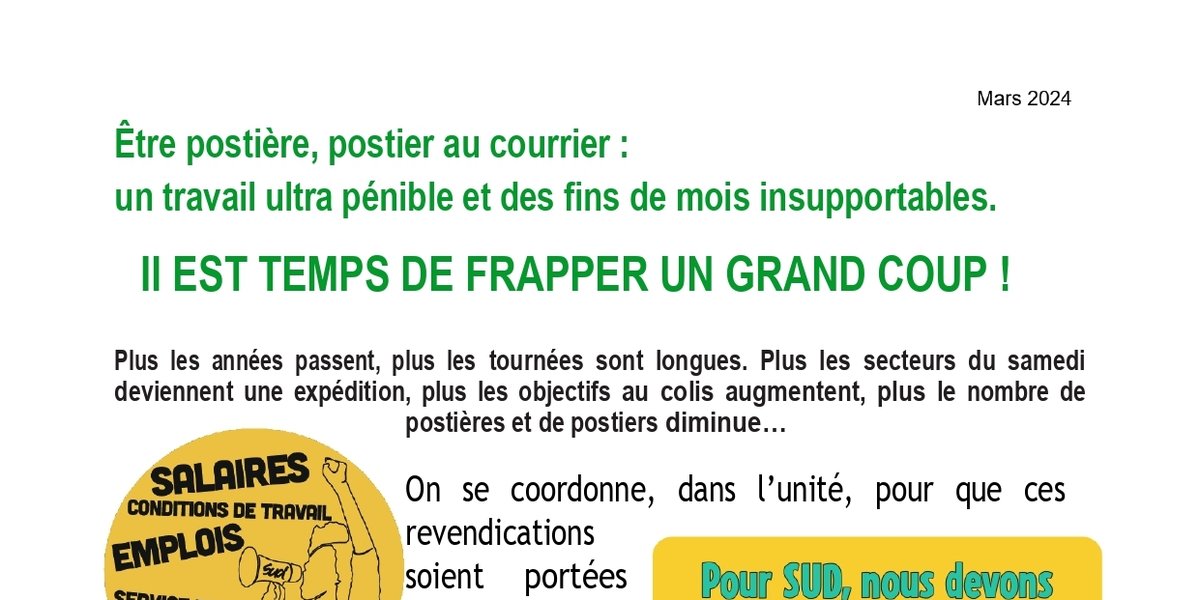 Pour lire le tract de SUD PTT Aude de février 2024, clique : ICI