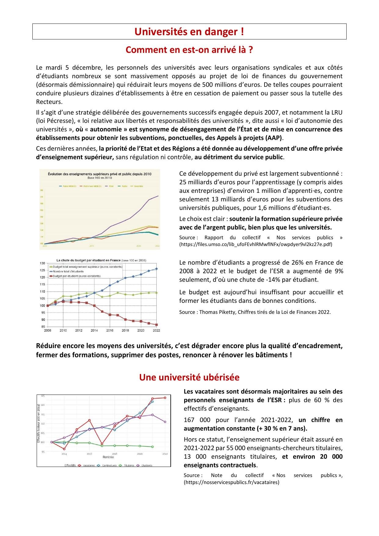 Suite à une première AG qui a rassemblé 800 personnels et étudiant-e-s mardi 3 décembre, l'intersyndicale poursuit le travail d'information et de construction de la mobilisation.