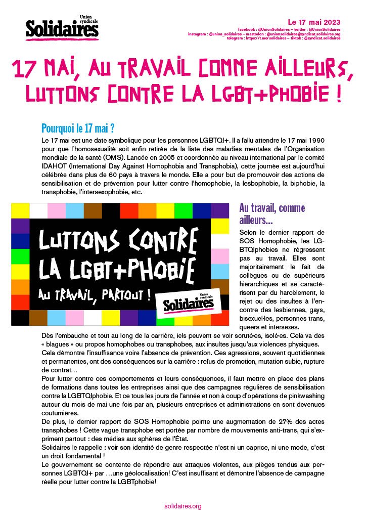 Solidaires le rappelle : voir son identité de genre respectée n’est ni un caprice, ni une mode, c’est un droit fondamental !