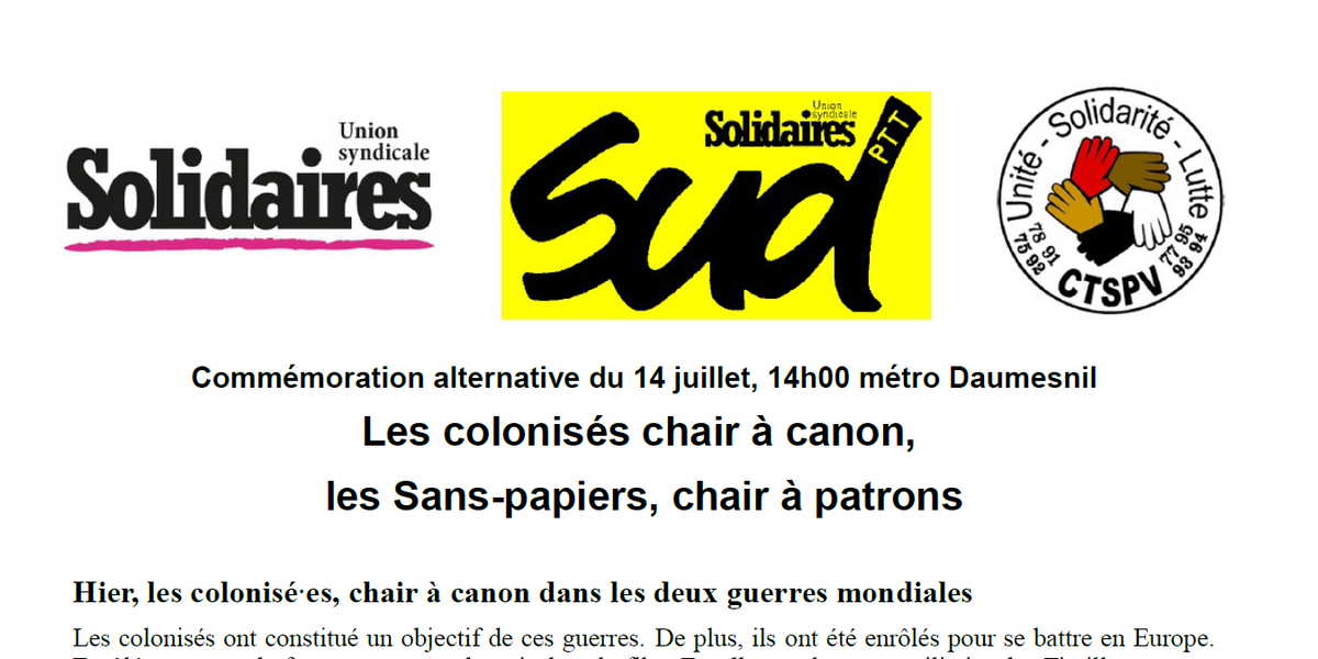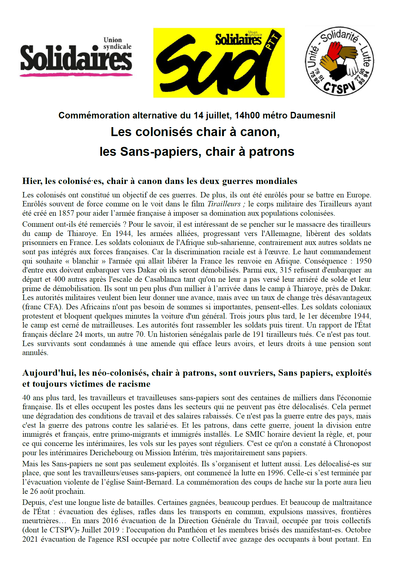 Commémoration alternative du 14 juillet, 14h00 métro Daumesnil