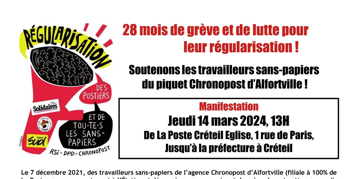 (Créteil) 28 mois de grève et de lutte pour leur régularisation ! Soutenons les travailleurs sans-papiers du piquet Chronopost d’Alfortville !