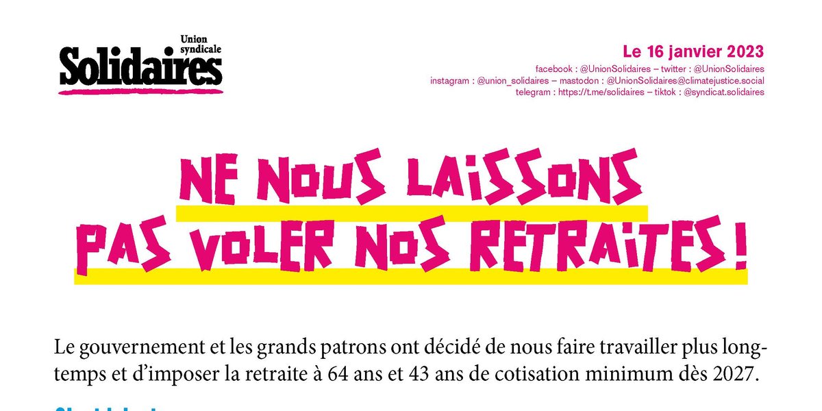 Le gouvernement et les grands patrons ont décidé de nous faire travailler plus longtemps et d’imposer la retraite à 64 ans et 43 ans de cotisation minimum dès 2027.
