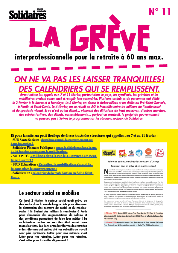 Et pour la suite, un petit florilège de divers tracts des structures qui appellent au 7 et au 11 février :