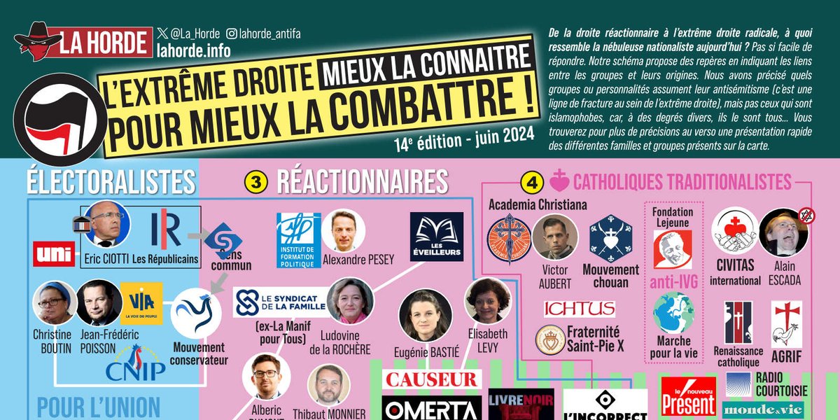 Voici la 14e édition de notre schéma de l’extrême droite dont nous vous proposons depuis plus de 12 ans maintenant des versions régulièrement actualisées. Dans le contexte actuel, notre schéma va certainement évoluer dans les prochaines semaines : en voici néanmoins une version actualisée, la dernière publiée sur le site ayant plus d’un an maintenant. Vous pouvez en commander une version imprimée sur dans notre espace "matériel".