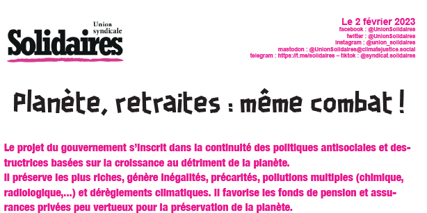 le système de retraite de solidarité intergénérationnelle et la planète contre le système capitaliste destructeur.