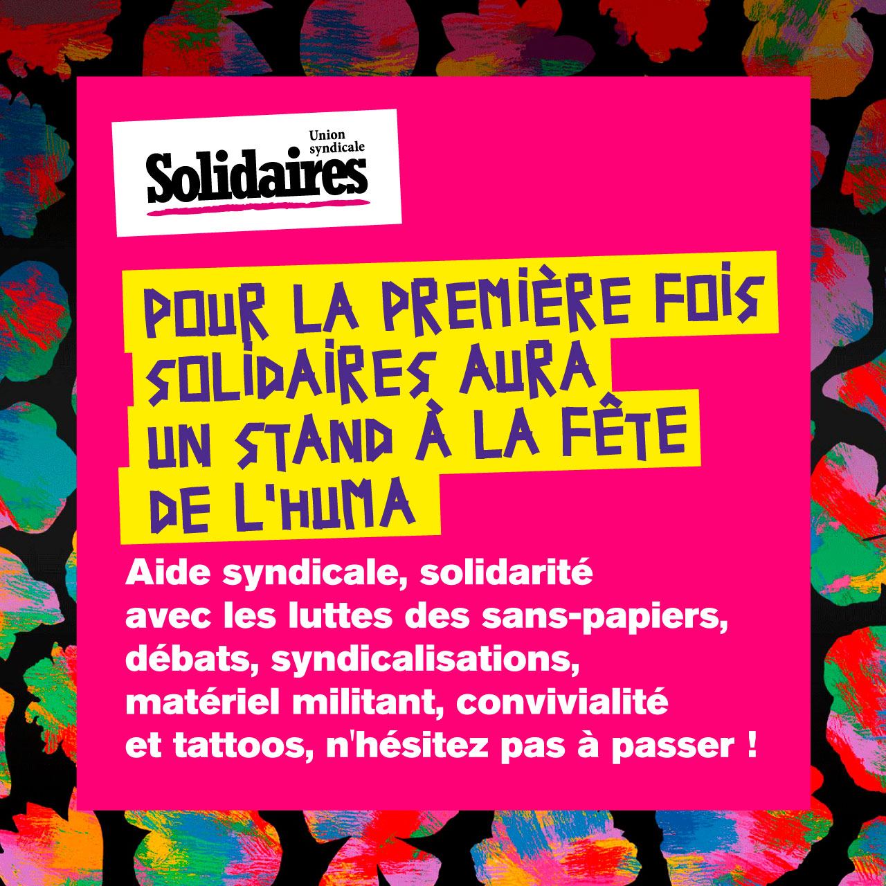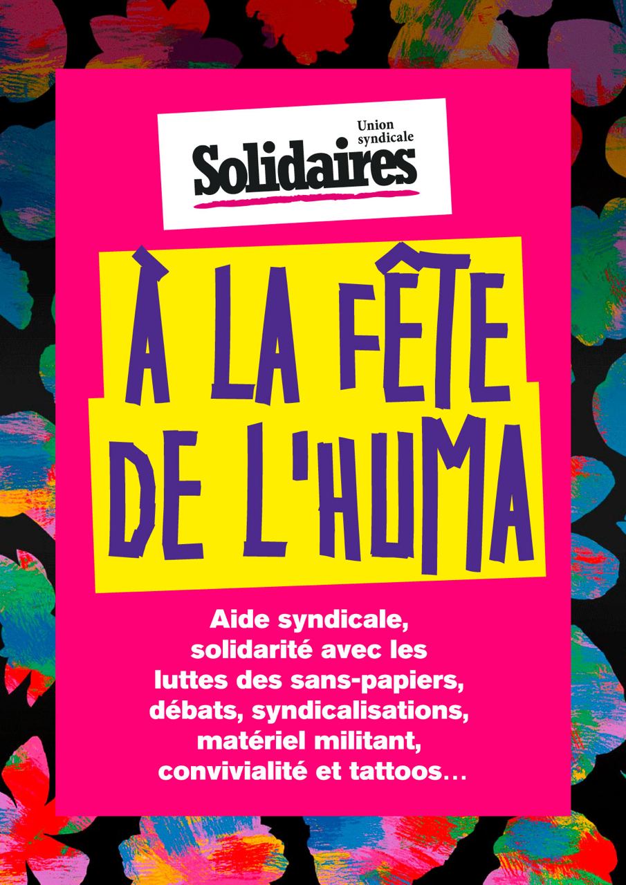 L'Union syndicale Solidaires tiendra un stand durant la fête de l'humanité du 9 au 11 septembre 2022.