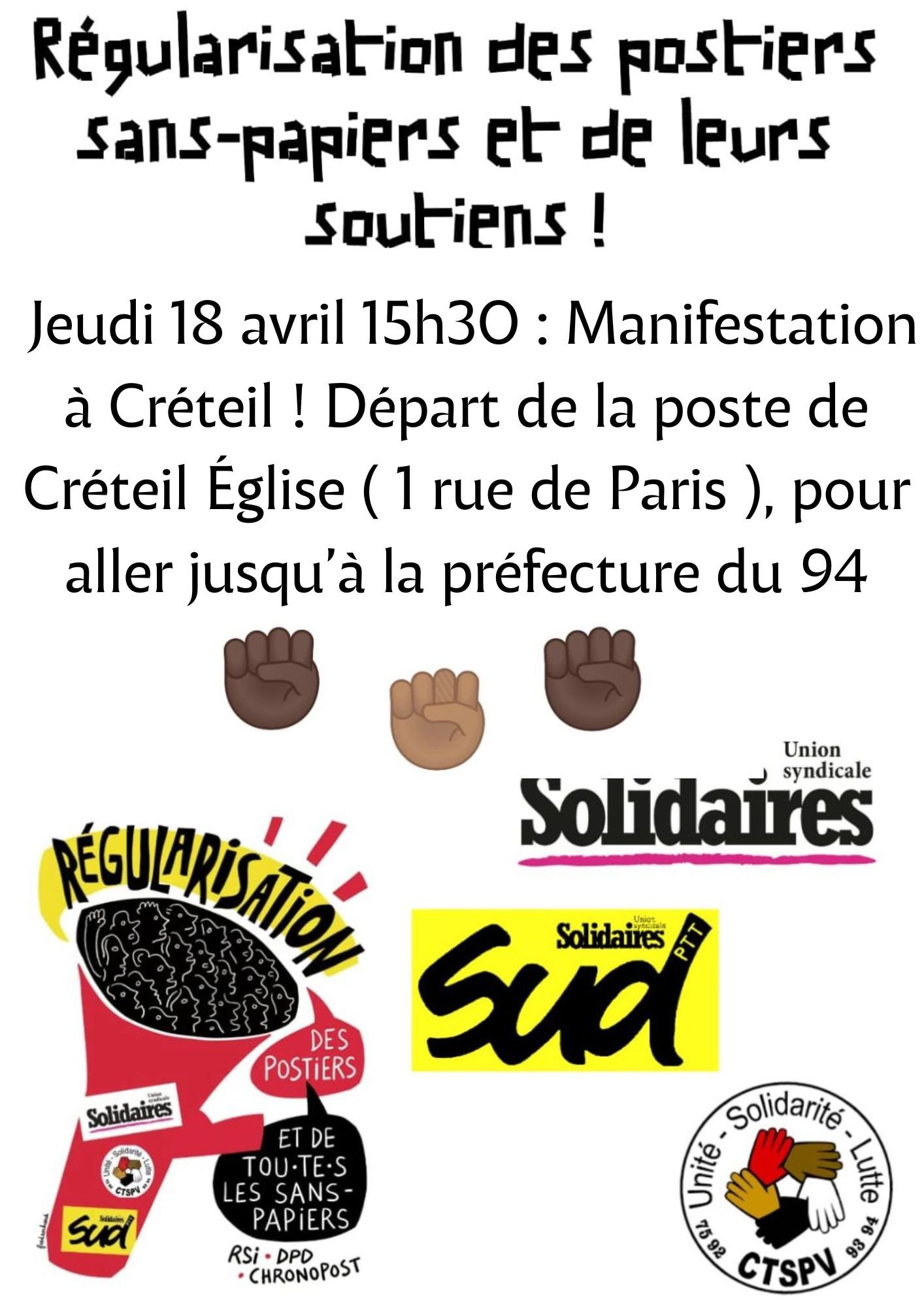 Soutenons les camarades sans papiers du piquet Chronopost d'Alfortville - mobilisation le 18 avril