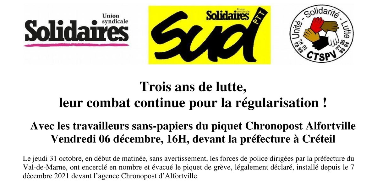 Soutien financier à la lutte : https://www.cotizup.com/sans-papiers-chrono-alfortvill