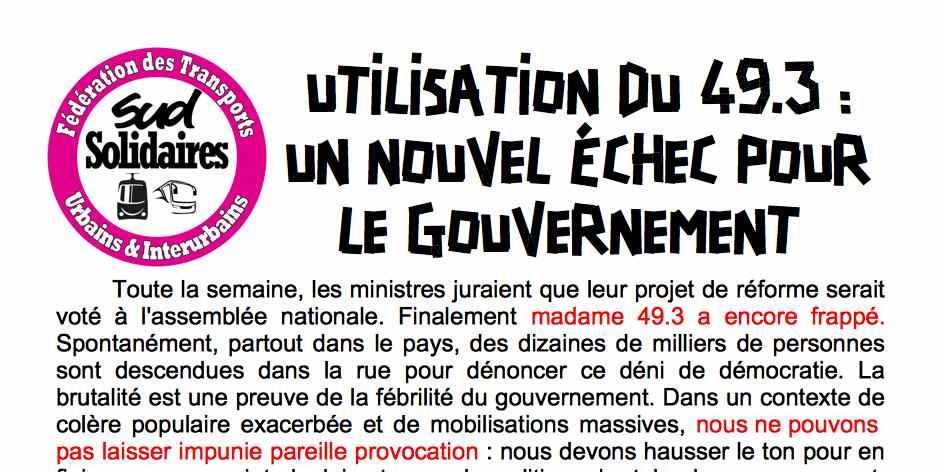 Publié le 17 mars 2023 par Fédération SUD Solidaires des Transports Urbains et Inter-urbains