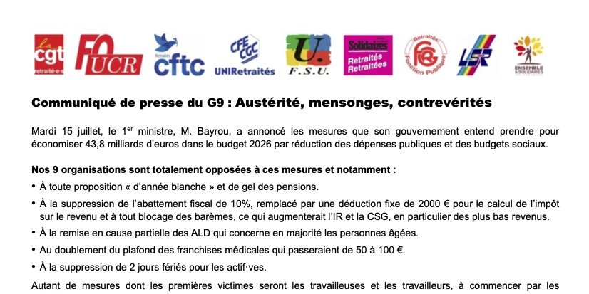 - Toute autre mesure qui diminuerait le pouvoir d’achat des retraité·es.