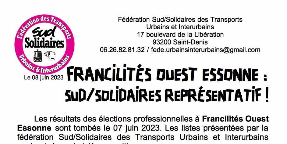 Francilités Ouest Essonne : Sud/Solidaires représentatif !