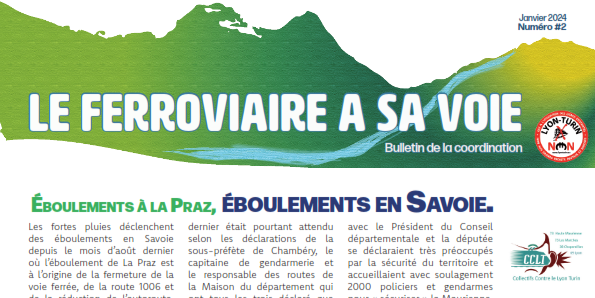 Vous trouverez le numéro 2 du bulletin de la coordination contre le Lyon Turin. Au sommaire du "Ferroviaire a sa voie" :