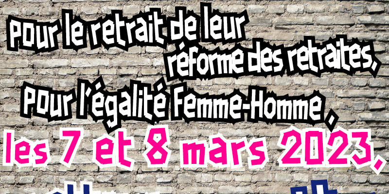 Pour le retrait de la réforme des retraites, pour l’égalité femme/homme, les 7 et 8 mars mettons nos services publics à l’arrêt ! et dès le 9 mars décidons des conditions pour renforcer le blocage de l’économie.