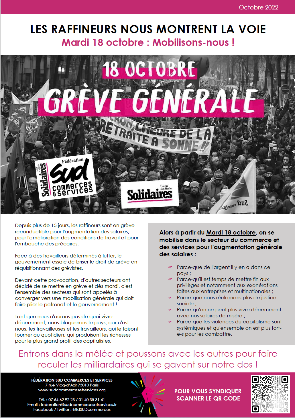 Alors à partir du Mardi 18 octobre, on se mobilise dans le secteur du commerce et des services pour l'augmentation générale des salaires :