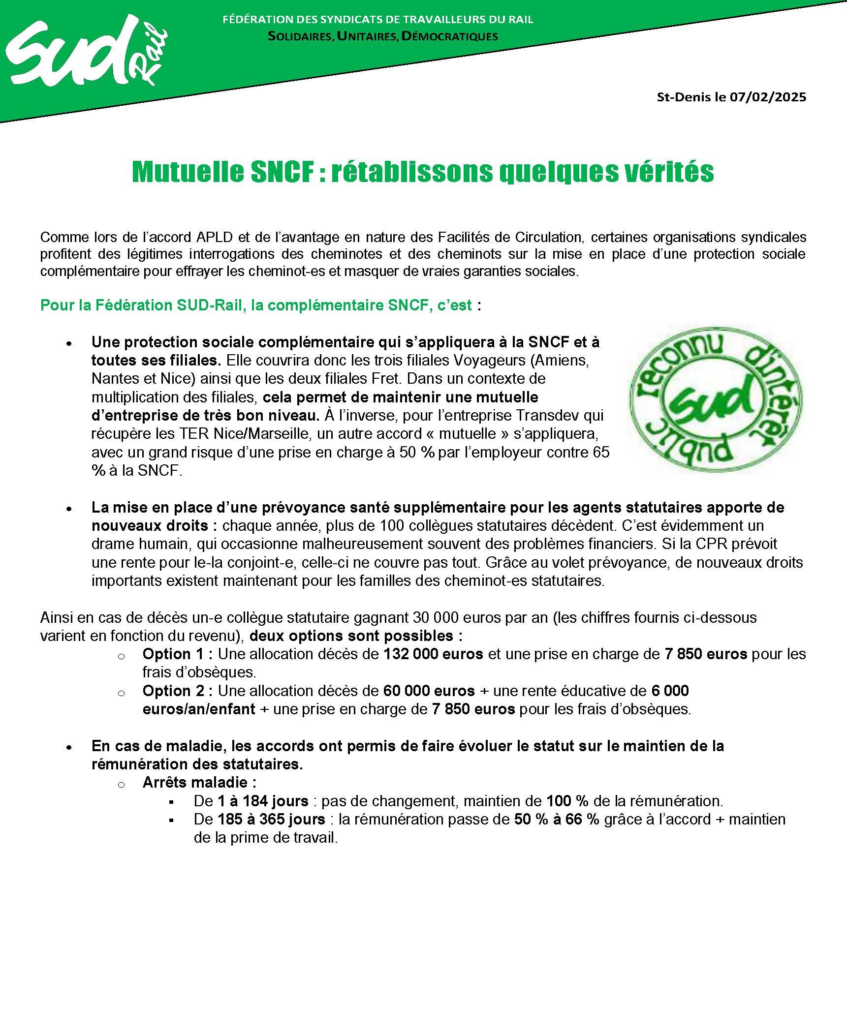 La fédération SUD-Rail est bien consciente de la volonté des gouvernements et du patronat de renforcer les positions des opérateurs privés pour financer la santé. Nous ne lâchons pas, pour l’ensemble des travailleuses et travailleurs de ce pays, notre revendication interprofessionnelle concernant le remboursement intégral des frais de santé par la sécurité sociale, seul mécanisme à même d’assurer un égal accès aux soins à un coût mesuré. Mais avec pragmatisme, nous n’adoptons pas uniquement une position de contestation mais aborderons l’ensemble des prochaines négociations/commissions de suivi pour obtenir toujours la meilleure protection sociale complémentaire (PSC) possible en santé et en prévoyance