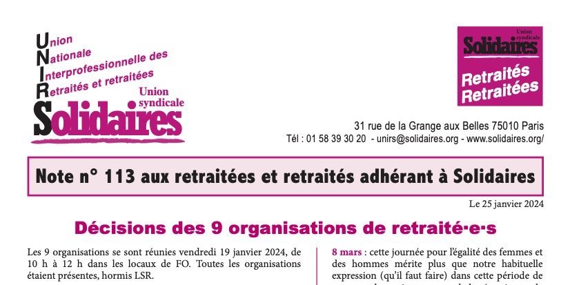 Journée d’action des retraité·es : ce sera le mardi 26 mars. Pour Paris, il faudra réfléchir à un parcours visible de la manifestation et à son objectif : Attal ne nous recevra pas et le lieu n’est pas enthousiasmant, Bercy peut accepter une rencontre et permettre d’en rendre compte ensuite, …