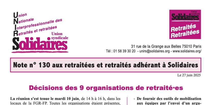 Publié le 27 juin 2025 par UNIRS - Union nationale interprofessionnelle des retraité-es solidaires