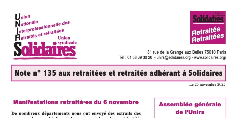 Au sommaire de cette note mensuelle de l'UNIRS :