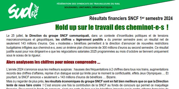 Ces « modestes » bénéfices permettent à la direction d’annoncer de nouvelles restrictions budgétaires infligées aux cheminot-e-s, avec un énième plan d’économie de 300 millions d’euros au second semestre.