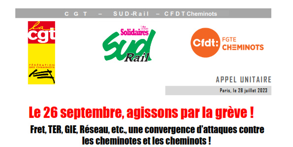 Les fédérations CGT – SUD-Rail – CFDT ont déposé une alarme sociale au président de la SNCF. La casse de la SNCF et la liquidation des droits des cheminots doivent cesser !