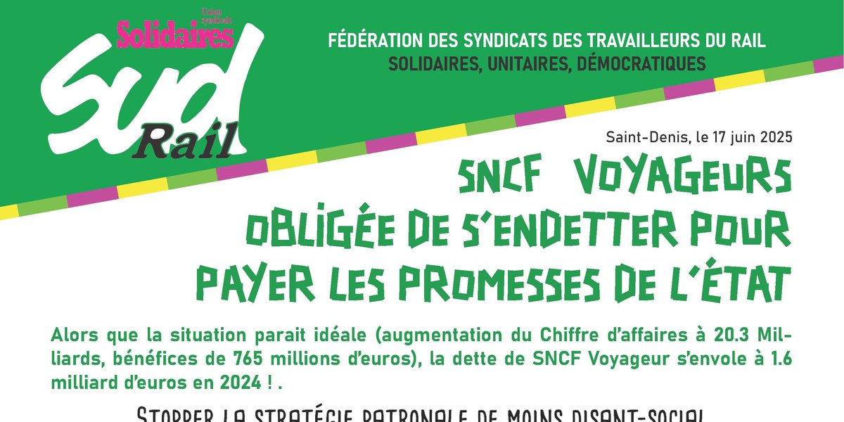 Alors que la situation parait idéale (augmentation du Chiffre d’affaires à 20.3 Milliards, bénéfices de 765 millions d’euros), la dette de SNCF Voyageur s’envole à 1.6 milliard d’euros en 2024 !
