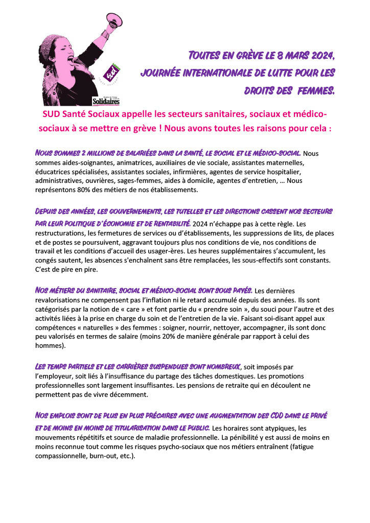 SUD Santé Sociaux appelle les secteurs sanitaires, sociaux et médico-sociaux à se mettre en grève ! Nous avons toutes les raisons pour cela :